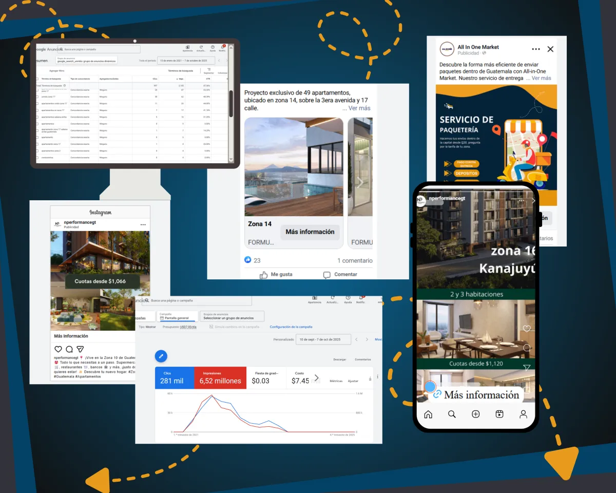 Ofrecemos un servicio integral de marketing digital diseñado para atraer, captar y convertir clientes potenciales. Nos enfocamos en el embudo de ventas, usando herramientas como el marketing de contenidos, la gestión de redes sociales, el email marketing y la publicidad digital (Google Ads, Meta Ads y Tiktok Ads) para asegurar que tu negocio no solo sea visible, sino que también genere resultados tangibles.