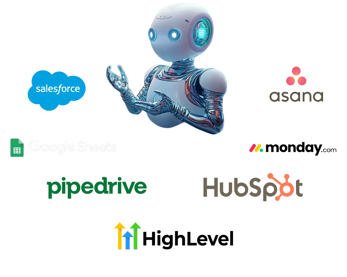 Nuestros agentes se conectan a cualquier CRM. Esto permite una integración bidireccional en la que la información fluye de manera constante entre el agente y tu sistema. Esto asegura que cada interacción con el cliente quede registrada y que tu equipo siempre tenga la información más actualizada.